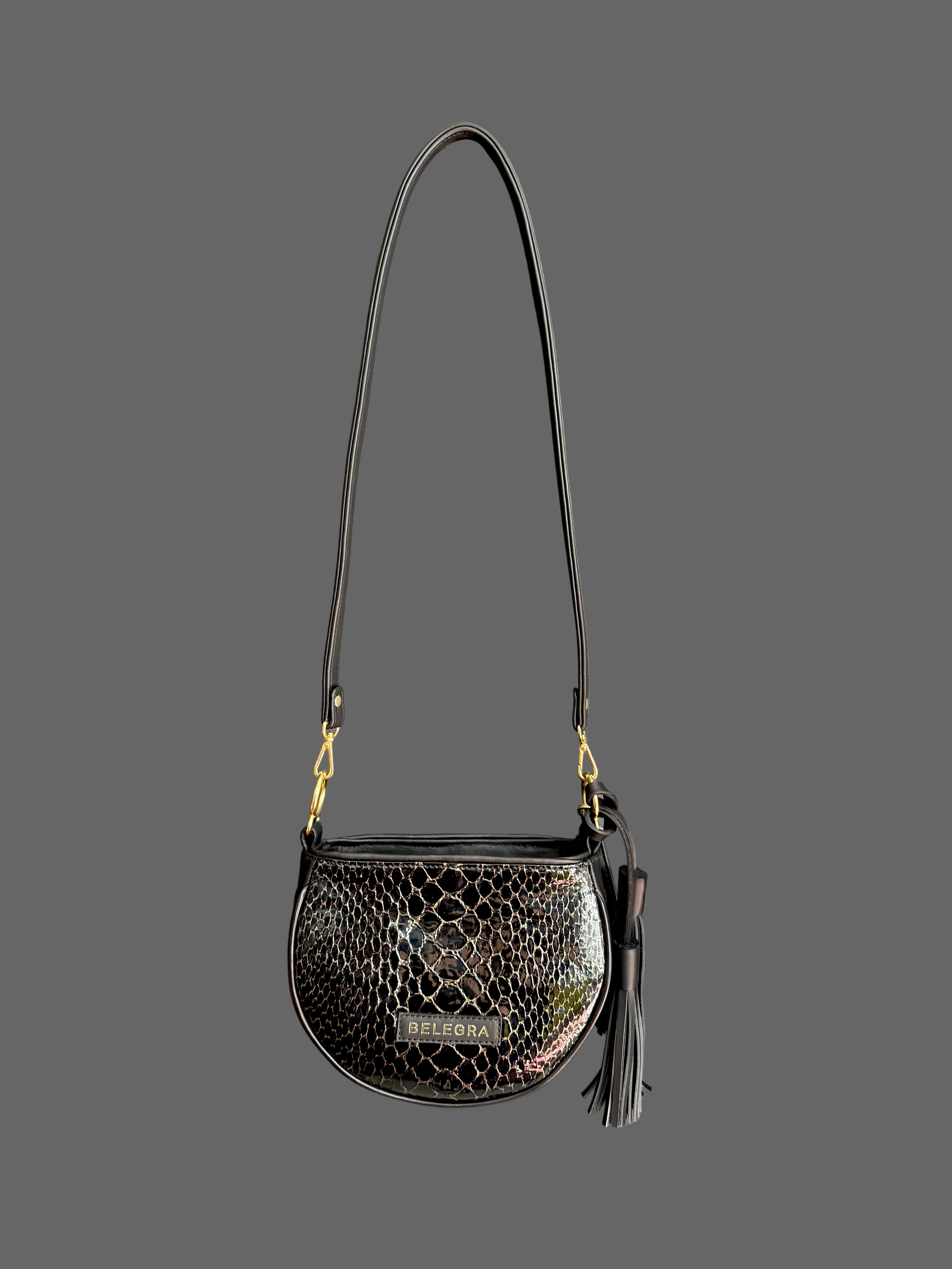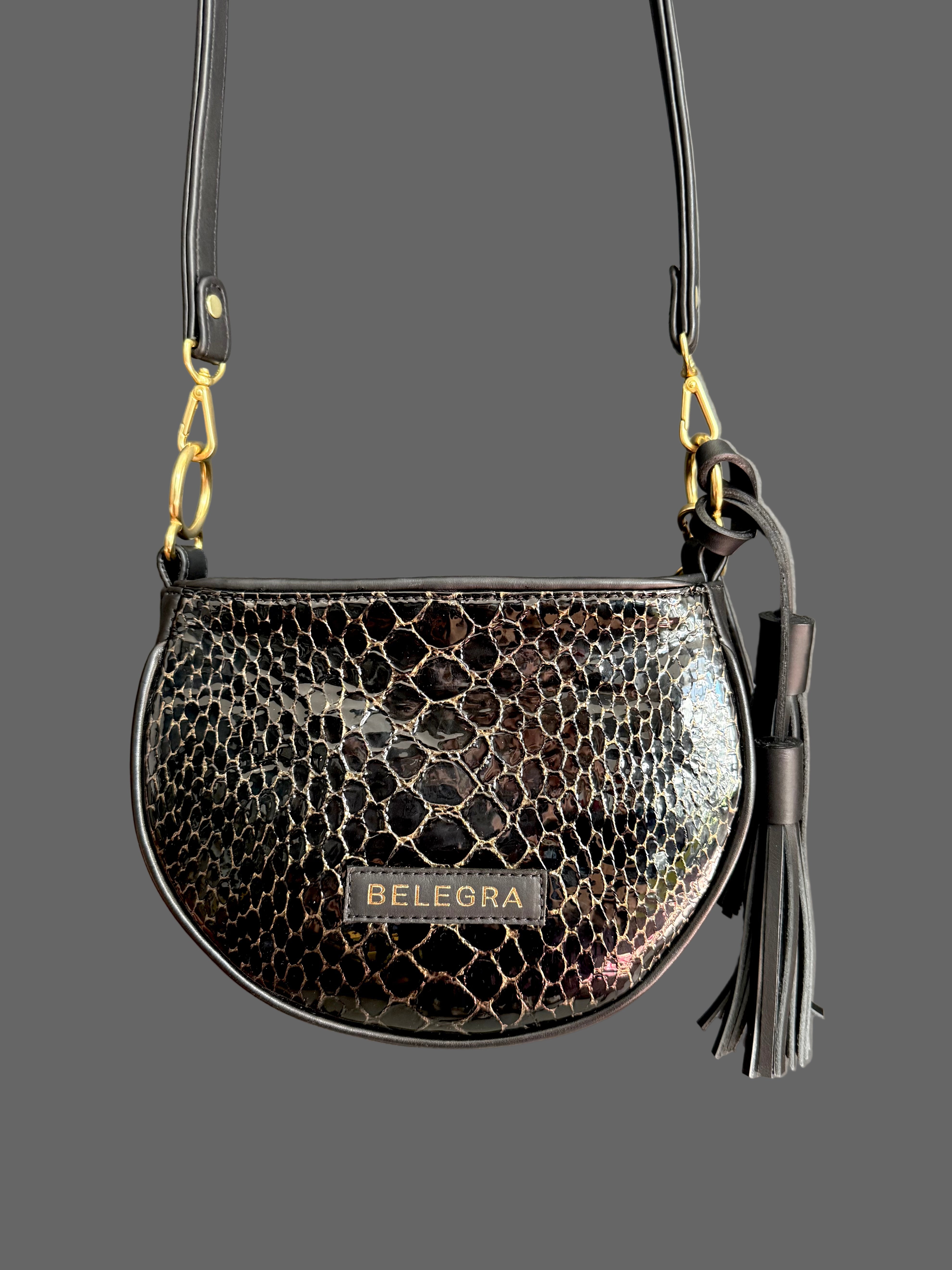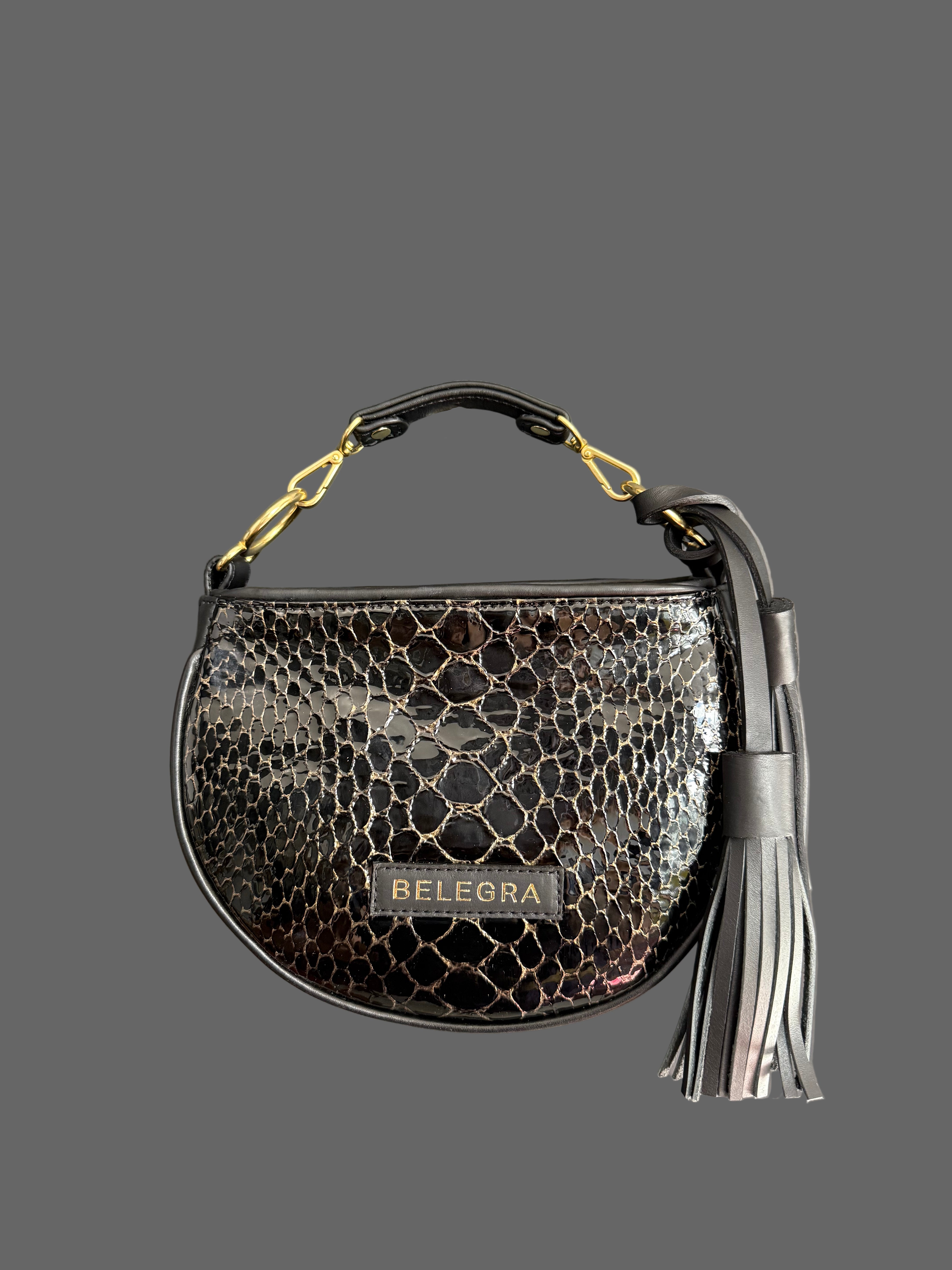 Husk Bag: Schlangengrauer Druck & Chrom