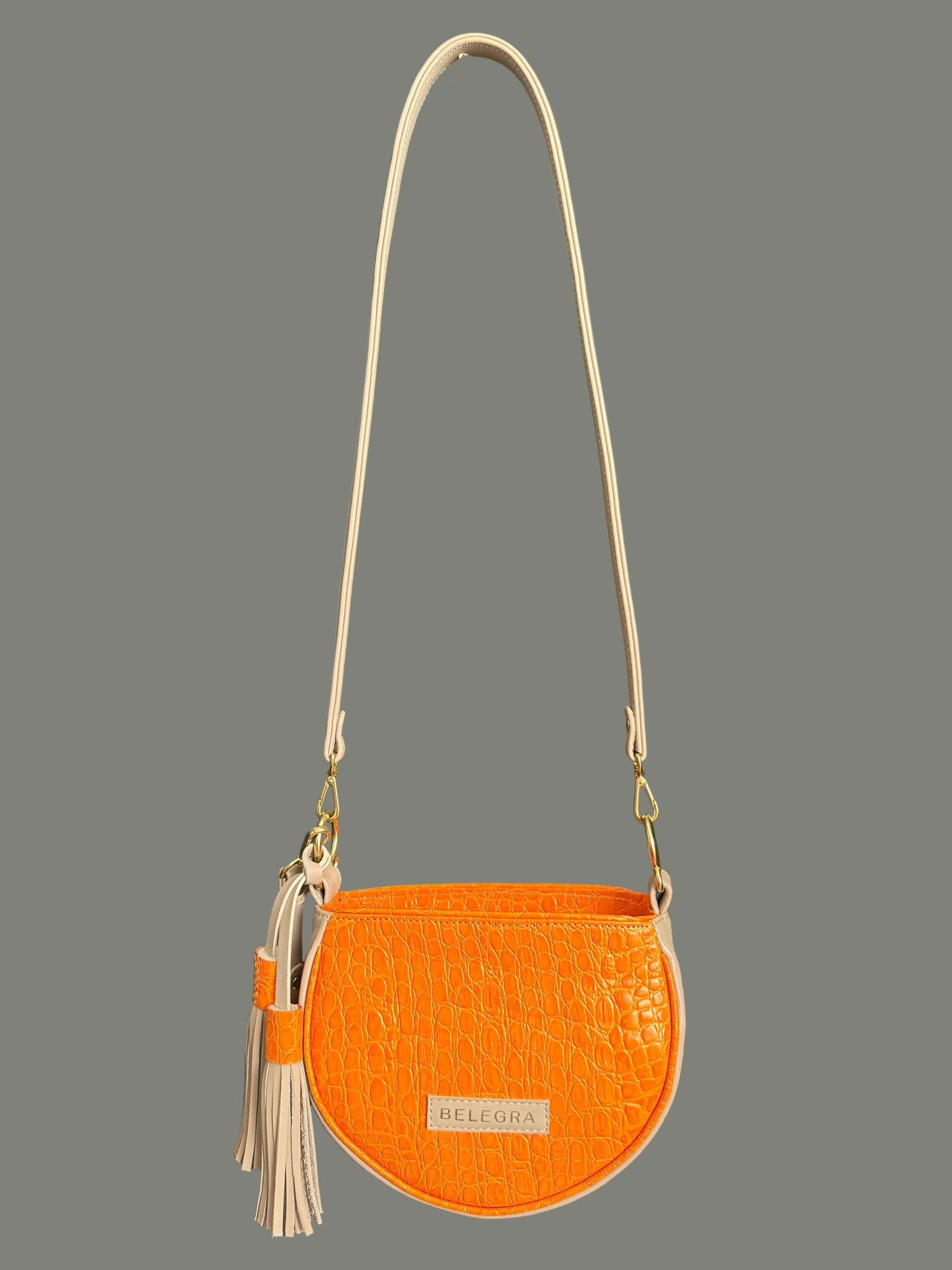 Husk Bag: Taupe & Papaya Croc Print