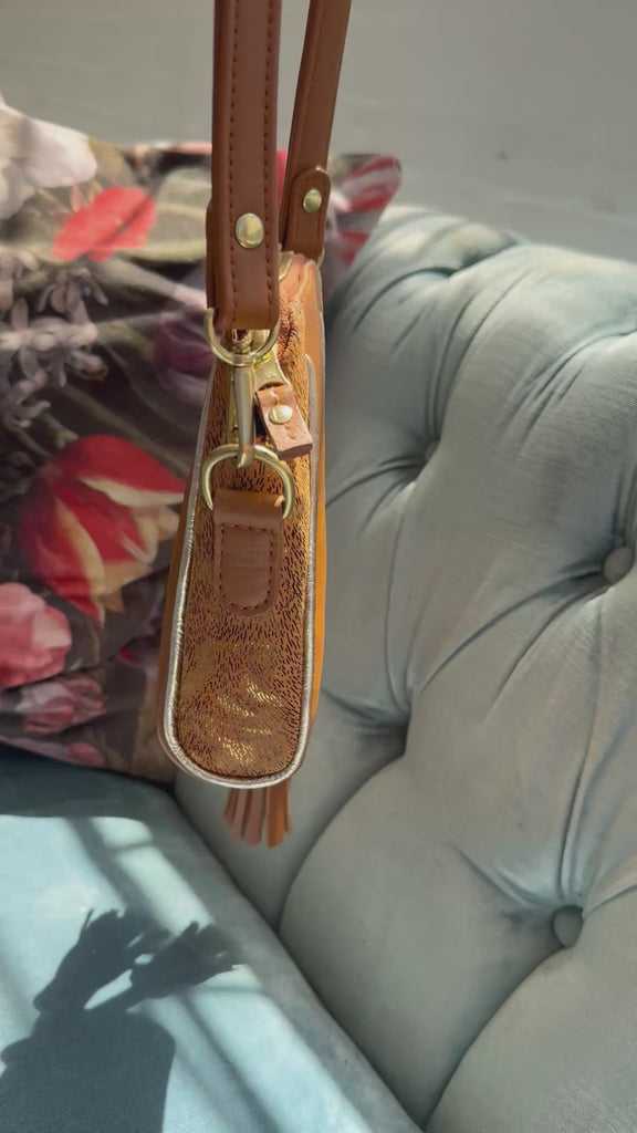 Unsere Umhängetasche besteht aus einer Mischung aus lokal gewonnenem Leder und Modeleder aus Italien.